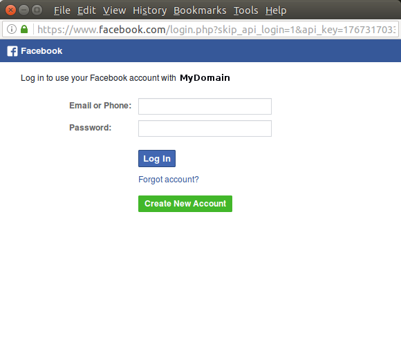 You will be assigned an Api endpoint (eg. https://mydomain.api.oneall.com), Public Key and Private Key - Register with Facebook: registration is via the oneall.com web site - leave the "Namespace" field empty.
