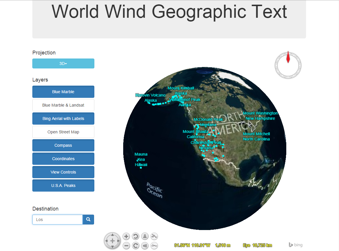 | Description: | WebGL 3-D globe with OGC WMS compliant Map server imagery support. Default is MS/Bing maps. Elevation data is in a proprietary mesh format. Elevation server and data are not open source. Feature rich and mature product. |