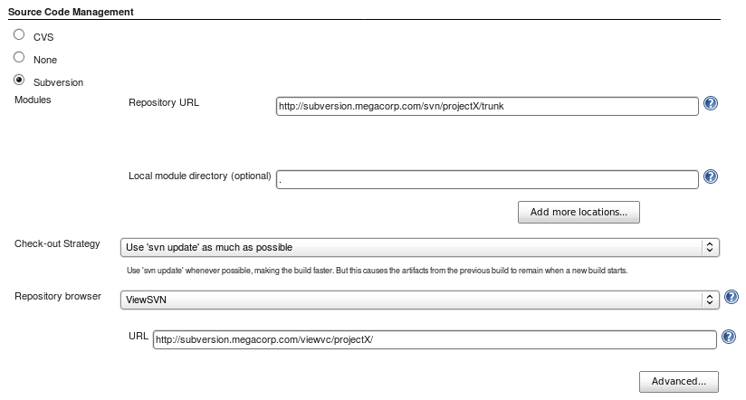 • Jenkins will perform a code checkout to $JENKINS_HOME/jobs/Jenkins/workplace/projectx