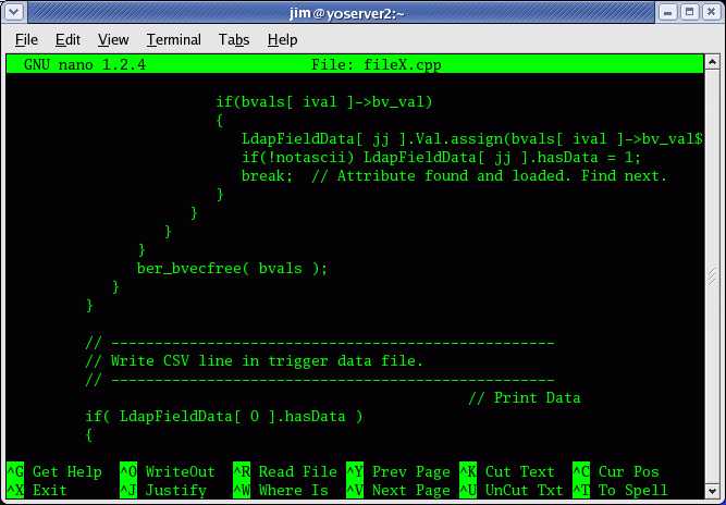 ![]() | jed: This console based plain text editor supports menus and other GUI features in a console based terminal. Targeted to software development. Text based but with some GUI menu features (accessible via esc+M). Feature rich including a unicode mode. Ubuntu Install: sudo apt-get install jed |