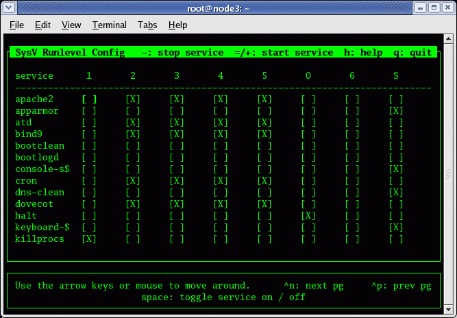 chkconfig [--level <levels>] <name> <on | off | reset >