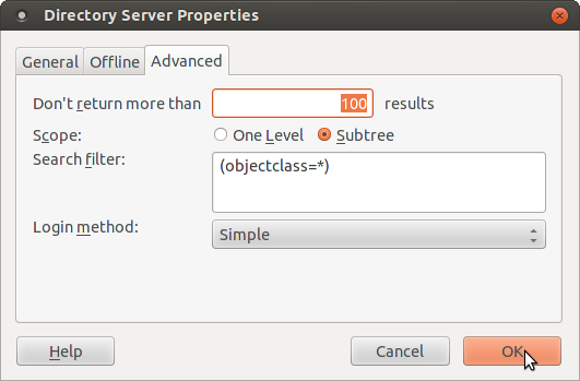 Seamonkey eMail LDAP configuration: Directory server properties, Advanced tab