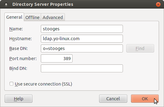 • LDAP Server: 208.188.34.109 or ldap.yolinux.com Using the IP address reduces the number of errors because of the reduced network latency.