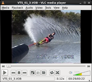 - or gmplayer and right click on the display screen to pull up menu and select "DVD" + "Open disk...".