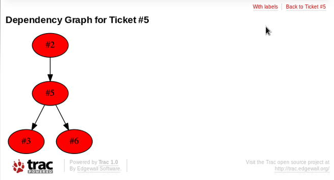 - Show ticket dependency graph: (select "Depgraph" link in upper right corner):