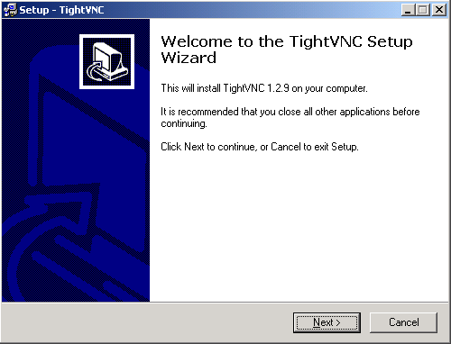 - Install wizard begins. Installs to c:\Program Files\TightVNC by default