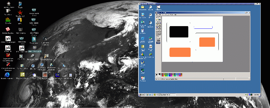 Use F8 to view VNC client menu.Screenshot of a Microsoft Windows 2000 desktop displayed on Linux using VNC: